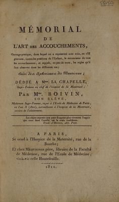 Mémorial de l'art des accouchements ouvrage pratique, dans lequel on a représenté avec soin, en 133 gravures, toutes les positions de l'enfant, le mécanisme de tous les accouchements et rappelé, en peu de mots, les règles qu'il faut observer dans les différents cas ; suivi des aphorismes de Mauriceau / Par Mme. Boivin.