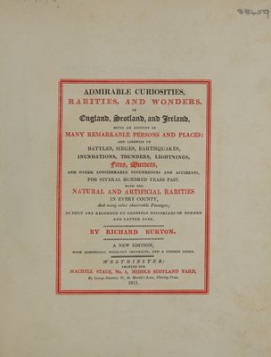 Admirable curiosities, rarities and wonders in England, Scotland and Ireland ... / by Richard Burton.