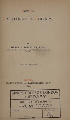 How to catalogue a library / by Henry B. Wheatley.