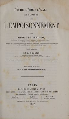 Etude médico-légale et clinique sur l'empoisonnement / par Ambroise Tardieu ... avec la collaboration de Z. Roussin ... pour la partie de l'expertise médico-légale relative à la recherche chimique des poisons.