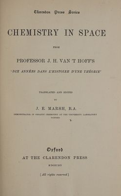 Chemistry in space : from J. H. van 't Hoff's 'Dix années dans l'histoire d'une théorie' / translated and edited by J.E. Marsh.