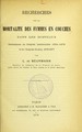 Recherches sur la mortalité des femmes en couches dans les hôpitaux : statistiques de l'hôpital Lariboisière, 1854-1878 et de l'hôpital Cochin, 1873-1877 / par L. de Beurmann.