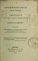 Aristotelous peri psyches = Aristotle on the vital principle / translated from the original text, with notes by Charles Collier.