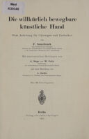 Die willkürlich bewegbare künstliche Hand : eine Anleitung für Chirurgen und Techniker / von F. Sauerbruch.