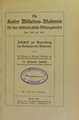 Die Kaiser Wilhelms-Akademie für das militäräztliche Bildungswesen : von 1895 bis 1910. Feltschrift zur Einweihung des Neubaues der Akademie. Im austrage der medizinal abteilung des königlichen Kriegsministeriums / bearbeitet von Hermann Schmidt.