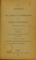 An address to the general practitioners of England and Wales on the provisions of the Bill 'for regulating the profession of physic and surgery,' as contrasted with those of the Medical Bill introduced in the last session of Parliament.