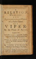 A relation of a very sudden and extraordinary cure of a person bitten by a viper, by the means of acids. Together with some remarks upon Dr. Tuthill's vindication of his objections against the doctrines of acids ... / [Sir John Colbatch].