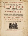 Petri van Musschenbroek A.L.M. Med. & Phil. D., phil. & mathes. profess. in Acad. Utraj., Physicae experimentales, et geometricae : de magnete, tuborum capillarium vitreorumque speculorum attractione, magnitudine terrae, cohaerentia corporum firmorum dissertationes : ut et ephemerides meteorologicae Ultrajectinae.