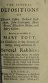 The several depositions of Edward Costen, Richard Stedman, John Sweetapple, Mary Peytoe, Elizabeth Mason, and Mary Costen; : relating to the affair of Mary Toft, of Godalming in the county of Surrey, being deliver'd of several rabbits: as they were taken before the Right Honourable the Lord Onslow, at Guildford and Clandon in the said county, on the third and fourth days of this instant December 1726.