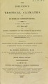 The influence of tropical climates on European constitutions ; to which is now added, an essay on morbid sensibility of the stomach and bowels, as the proximate cause, or characteristic condition of indigestion, nervous irritability, mental despondency, hypochondriasis, &c. &c. preceded by observations on the diseases and regimen of invalids, on their return from hot and unhealthy climates / by James Johnson.