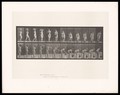 A naked woman carrying a water pitcher on her shoulder, bending to place it on the ground then beginning to straighten up. Collotype after Eadweard Muybridge, 1887.