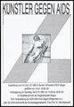 A distorted figure lying down behind barbed wire within the logo of the organisation AIDS-Hilfe, with the word 'Danger'; an advertisement for "Künstler gegen AIDS" (Artists against AIDS), an exhibition in Siegen from 4 September to 3 October 1993. Lithograph by Ch. Hobert and U. Decker, 1993.