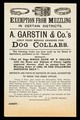 Exemption from muzzling in certain districts : A. Garstin & Co.'s (only prize medals awarded for) dog collars.