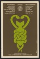 A caduceus in which the two snakes are entwined around a nuclear bomb: representing Cuban physicians' opposition to nuclear war. Colour screen print (?) by O. Martínez, 1985.