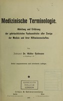Medizinische Terminologie : Ableitung und Erklärung der gebräuchlichsten Fachausdrücke aller Zweige der Medizin und ihrer Hilfswissenschaften / von Walter Guttmann.
