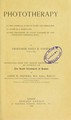 Phototherapy : (1) the chemical rays of light and small-pox--(2) light as a stimulant--(3) the treatment of lupus vulgaris by concentrated chemical rays / by Niels R. Finsen ; translated from the German edition, and with an appendix on the light treatment of lupus ; by James H. Sequeira.
