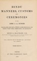 Hindu manners, customs and ceremonies / by the Abbe J.A. Dubois ; translated from the author's later French ms. and edited with notes, corrections, and biography by Henry K. Beauchamp.