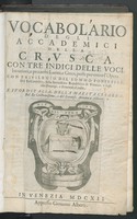 Vocabolario degli Accademici della Crusca, con tre indici delle voci, locuzioni, e proverbi latini, e greci, posti per entro l'opera.
