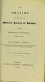 The oration delivered before the Medical Society of London, at their sixty-second anniversary, March 9th, 1835 / by Walter C. Dendy.