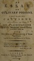 An essay on culinary poisons : containing cautions relative to the use of laurel-leaves, hemlock, mushrooms, copper-vessels, earthen jars, &c. with observations on the adulteration of bread and flour, and the nature and properties of water.
