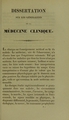 Dissertation sur les généralités de la médecine clinique, présentée au concours pour une chaire de médecine clinique à la Faculté de médecine, le 11 juillet 1831 / par P.A. Piorry.