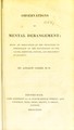 Observations on mental derangement : being an application of the principles of phrenology to the elucidation of the causes, symptoms, nature, and treatment of insanity / by Andrew Combe, M. D.