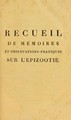 Recueil de mémoires et observations-pratiques sur l'épizootie / par le Docteur Barberet, avec des notes de Bourgelat; par M. Buniva; et par le Docteur Revolat.