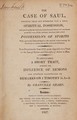 The case of Saul, shewing that his disorder was a real spiritual possession, and proving ... that actual possession of spirits were generally acknowledged by the ancient writers ... First printed in the year 1777, as an appendix to A tract on the law of nature and principles of action in man. To which is added a short tract wherein the influence of demons are further illustrated by remarks on Timothy IV, 1-3 / By Granville Sharp.