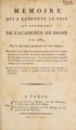 Mémoire qui a remporté le prix au jugement de l'Académie de Dijon en 1782 : sur la question proposée en ces termes : déterminer avec plus de précision qu'on ne l'a fait jusqu'à présent, le caractere des fievres intermittentes, et indiquer par des signes non équivoques, les circonstances dans lesquelles les fébrifuges peuvent être employés avec avantage, et sans danger pour les malades / par M. Voullonne.