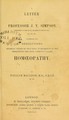 A letter to Professor J.Y. Simpson, President of the Royal College of Physicians ... concerning the resolutions recently passed by that body in reference to the therapeutic practice commonly called homoeopathy / by William MacLeod.