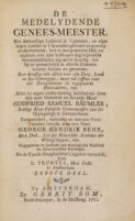De medelydende genees-meester. Deel I. / Vermeerdert, verbetert en met een vooreeden verrykt door ... George Hendrik Behr ... Na de vierde Hoogduitsche Uitgaave vertaaldt, door C. Truntza.