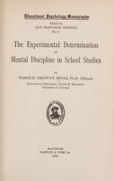 The experimental determination of mental discipline in school studies / by Harold Ordway Rugg.