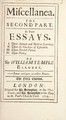 Miscellanea. The second part : in four essays I. upon antient and modern learning II. upon the gardens of Epicurus III. upon heroick virtue IV. upon poetry / by Sir William Temple Baronet.