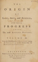 De l'origine des loix, des arts, et des sciences; et de leurs progrès chez les anciens peuples / [Anon].