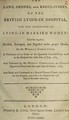 The laws, orders, and regulations of the British Lying-in Hospital, for the reception of lying-in married women / collected together, revised, enlarged, and digested under proper heads, by the Weekly Committee, in pursuance of an order of the Quarterly General Court.