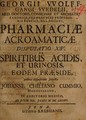 Georgii VVolffgangi VVedelii, Med. Doctoris, Consiliarii ... Pharmaciae acroamaticae disputatio XIV. De spiritibus acidis, et urinosis, eodem praeside, / publicae disquisitioni subjecta à Johanne Chiliano Cummio, ... ad diem XIX. Junii M DC LXXXVI.