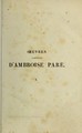 Oeuvres complètes d'Ambroise Paré / revues et collationnées sur toutes les éditions, avec les variantes; ornées de 217 planches et du portrait de l'auteur; accompagnées de notes historiques et critiques; et précédées d'une introduction sur l'origine et les progrès de la chirurgie en Occident du sixième au seizième siècle, et sur la vie et les ouvrages d'Ambroise Paré, par J.-F. Malgaigne.