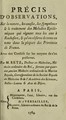 Précis d'observations, sur la nature, les causes, les symptômes & le traitement des maladies epidémiques qui règnent tous les ans à Rochefort, & qu'on observe de tems en tems dans la plupart des provinces de France : Avec des conseils sur les moyens de s'én préserver. / par M. Retz.