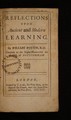 Reflections upon ancient and modern learning / By William Wotton, B. B.