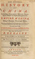 The general history of China. Containing a geographical, historical, chronological, political and physical description of the empire of China, Chinese-Tartary, Corea, and Thibet. Including an exact and particular account of their customs, manners, ceremonies, religion, arts and sciences ... / Done from the French of P. Duhalde ... [by R. Brookes].