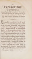De l'éclectisme en littérature memoire auquel la médaille d'or de premier classe a éte décernée par la Société Royale des Sciences, Belles-Lettres et Arts de Clermont-Ferrand, dans la séance publique du 26 Décembre, 1830; suivi de 'Désaix' et autres poésies / Par Mme. Elizabeth Celnart [pseud].