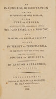 An inaugural dissertation on the influence of one disease, in the cure of others / [Ashton Alexander].