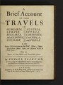A brief account of some travels in Hungaria, Servia, Bulgaria, Macedonia, Thessaly, Austria, Styria, Carinthia, Carniola, and Friuli, as also some observations on the gold, silver, copper, quick-silver mines, baths, and mineral waters in those parts. With the figures of some habits and remarkable places / By Edward Brown, M.D.
