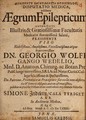 Annuente sacro sancta monotriade, disputatio medica, exhibens aegrum epilepticum ... / praesidente ... Dn. Georgio Wolffgango Wedelio ... publicae ac placidae Philiatrorum ventilationi atq[ue] censurae subjecta à Simone Zeidelern ... Ad diem Martii A.C.M DC LXXIII.