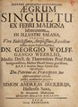 Supremo archiatro Benedicente! Aegrum singultu ex febri maligna laborantem ... / praeside ... Dn. Georgio Wolffgango Wedelio ... publicè examinandum proponit responsurus autor Simon Andreas Beckerus ... MDCLXXVI.