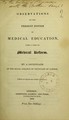 Observations on the present system of medical education,with a view to medical reform / by a Licentiate of the Royal College of Physicians of London.
