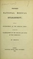 Proposed national medical establishment for the government of the medical body and for the guardianship of the health and lives of the community / by Medicus.