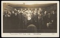 German prisoners of war, one in drag, propose a toast during a performance at Leigh prisoner of war camp, Lancashire. Photographic postcard by H. Attenborough, 191-.