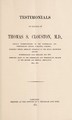 Testimonials in favour of Thomas S. Clouston, M.D. : medical superintendent of the Cumberland and Westmorland Asylum, Garlands, Carlisle : formerly senior assistant physician to the Royal Edinburgh Asylum.