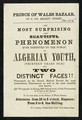 Handbill (Sept. 1856) advertising the exhibition of an Algerian youth (13 years old) with 2 faces at the Prince of Wales Bazaar, Regent Street, London.